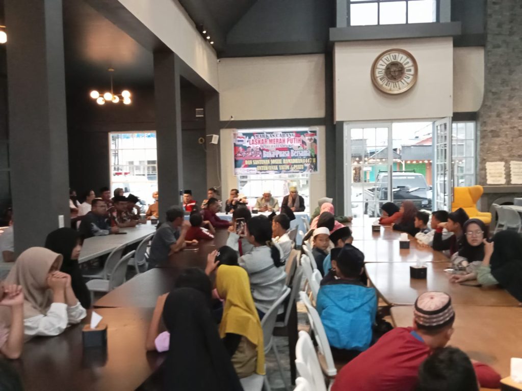Sidikalang- Dairi Pers : Markas Cabang ( Macab) Laskar Merah Putih Dairi dipenghujung Ramadhan 2026 menjamu ratusan kaum dhuafa, dan sekitar 56 anak yatim piatu untuk buka bersama di salah satu Cafee bilangab panji Sidikalang kamis (12/3/2026). Acara berlangsung meriah dihadiri Bupati Dairi, Ketua MUI, personal PT Dairi Prima Mineral , sejumlah Ustad serta sejumlah mantan politikus Dairi yang bergabung dengan LMP. . Dihadiri langsung ketua Macab LMP Dairi Fry Charles Pasaribu , Sekretaris Sennang Berampu serta ratusan pengurus Macab LMP Dairi.