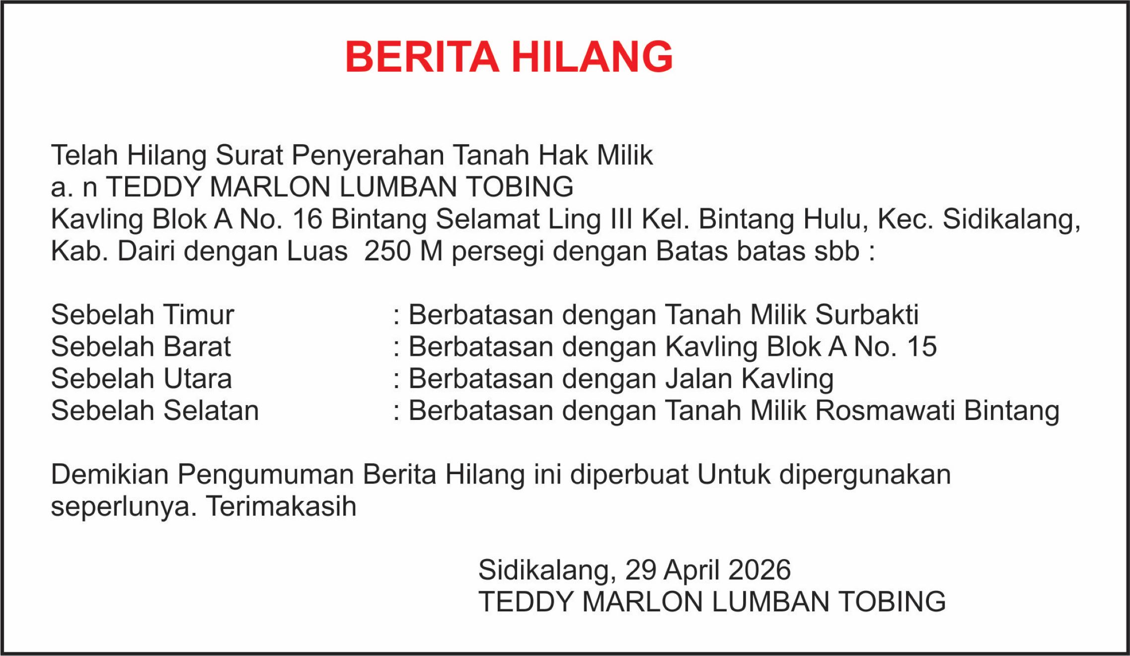 Ucapan Selamat HUT Dairi Pers ke 6 dari Desa Jambur Indonesia